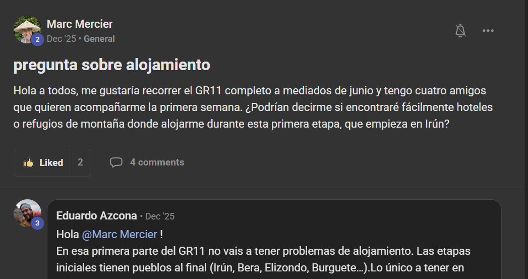 📋 En la guía del GR11 tenemos un apartado exclusivo en cada etapa donde explicamos las diferentes posibilidades. Ahí ofrecemos las opciones más amigables para el amante del trekking, dando diferentes alternativas, incluyendo también aquellos mecenas que apoyan el proyecto.